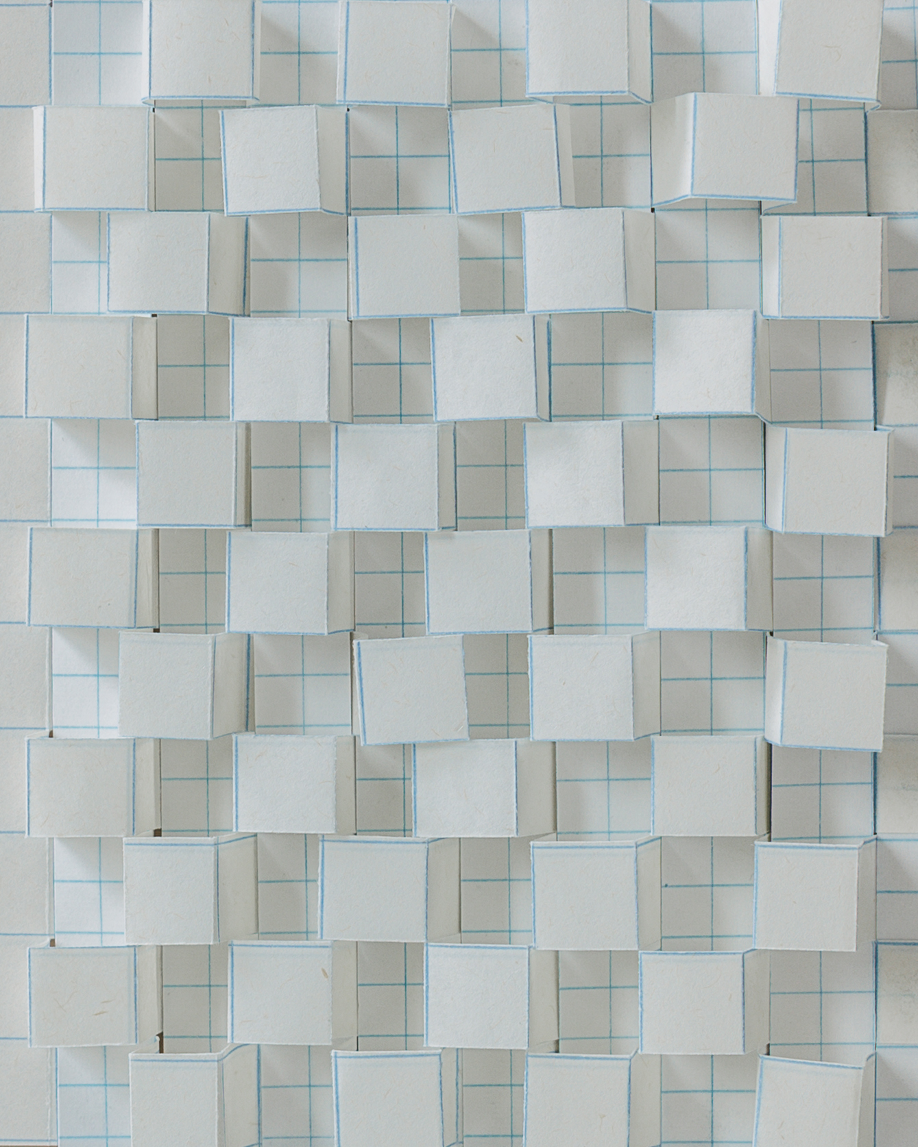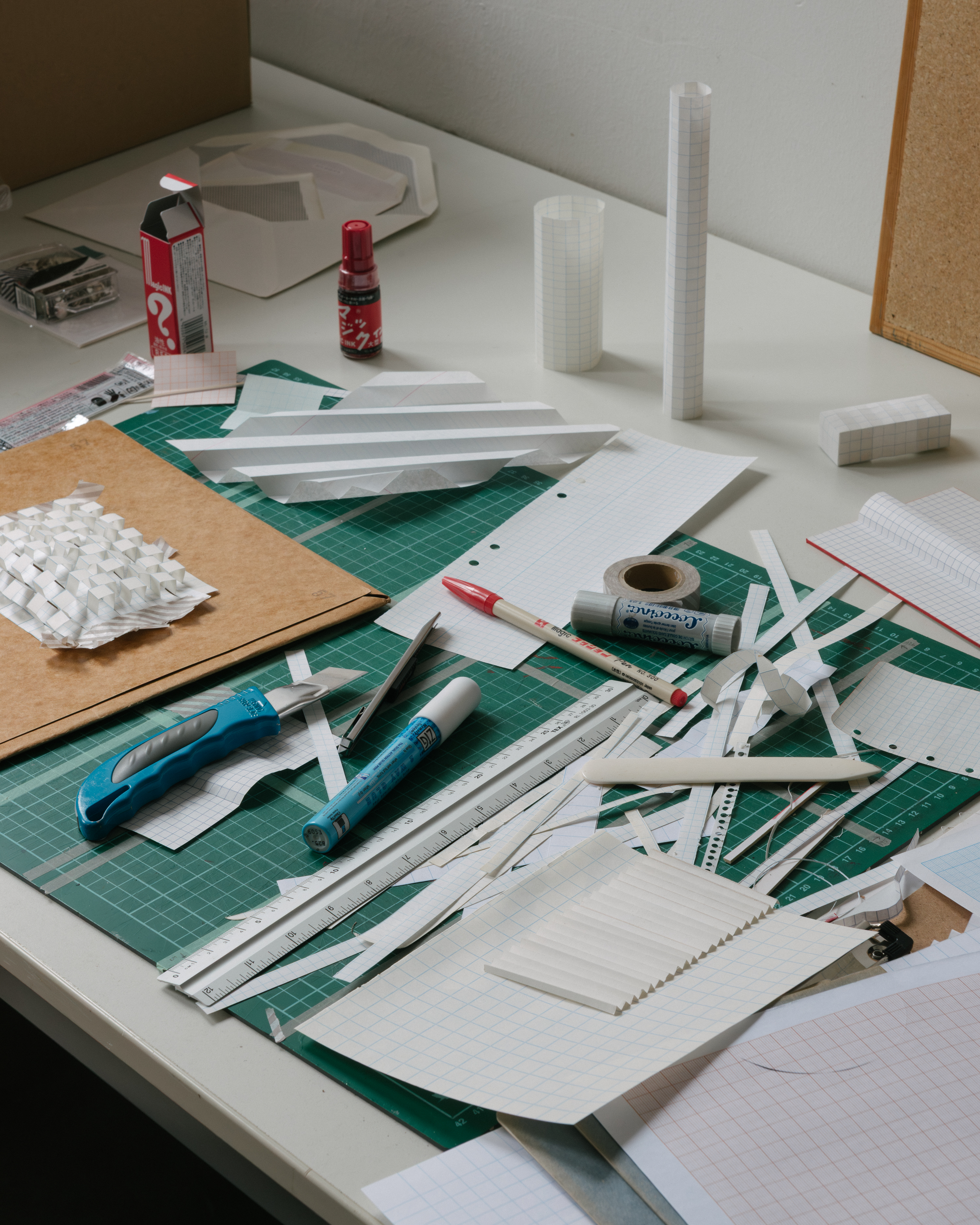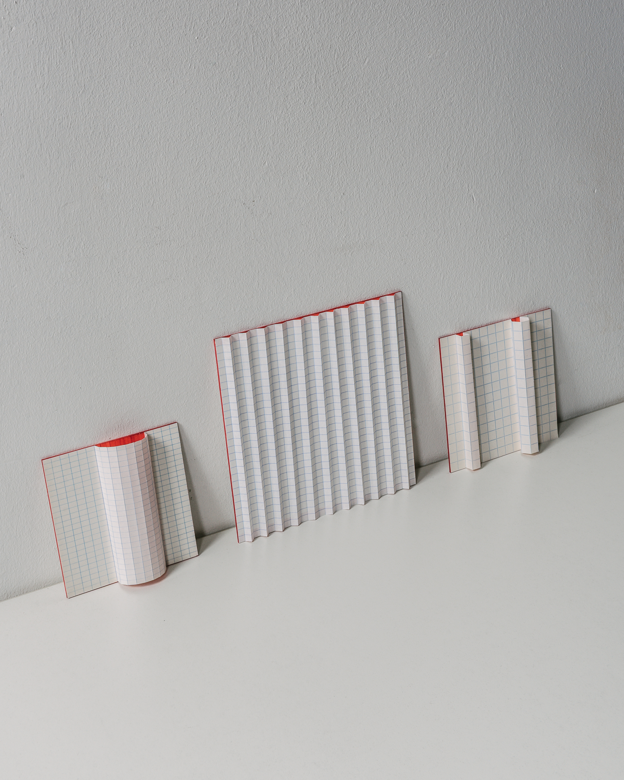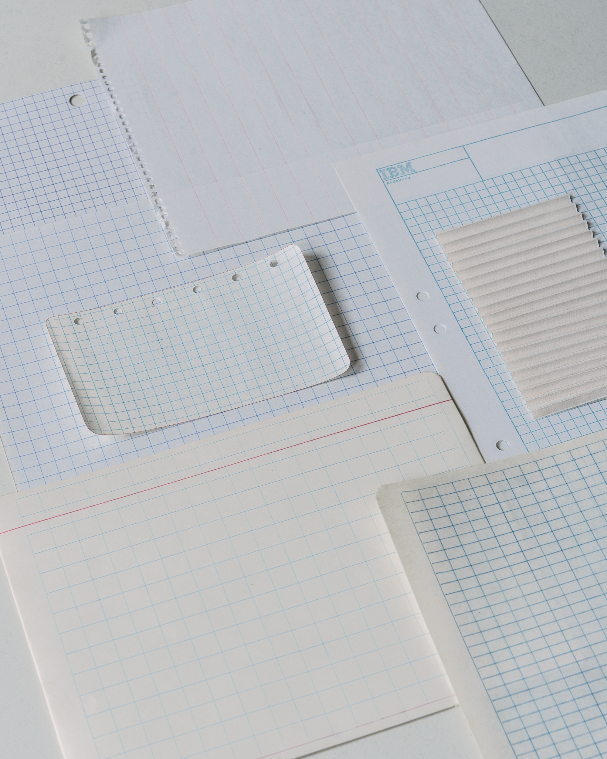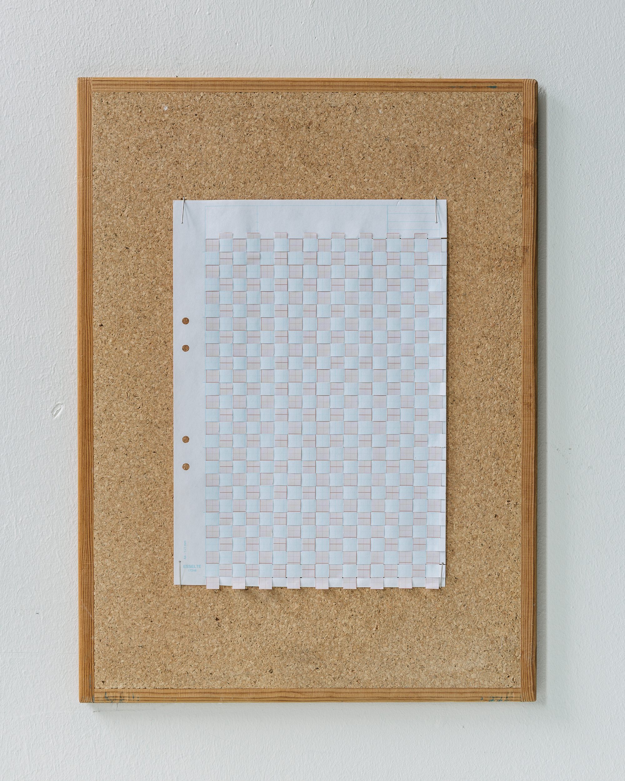 Collages, weavings, and sculptural compositions created with paper and materials from office and school environments, collected over many years across Sweden and Europe.